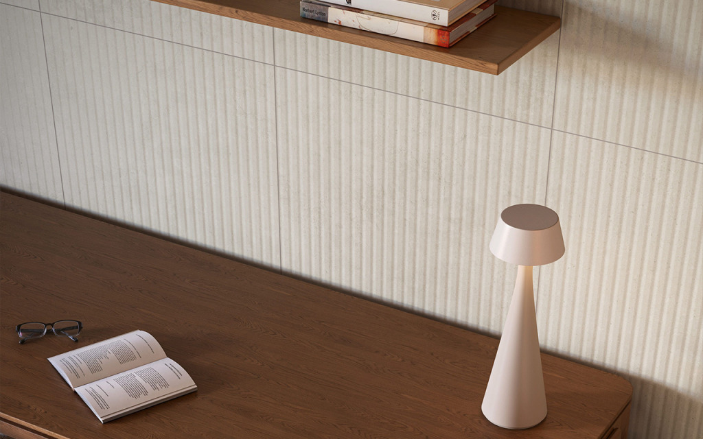 Para o escritório em casa, Jaraguá Areia no acabamento Ripado (60x120cm) é a escolha certa. Ele cria uma parede de destaque que deixa o ambiente mais aconchegante e menos cansativo visualmente, além de decorar.