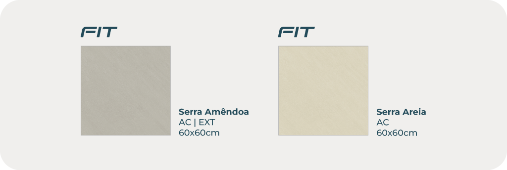 Outro ponto que faz toda a diferença é que a linha faz parte da nova categoria, FIT. Esse porcelanato tem nova espessura, o que o torna mais leve, fácil de instalar e até mais prático no transporte e armazenamento. Tudo isso sem abrir mão da qualidade e da resistência que a marca já é conhecida por entregar.